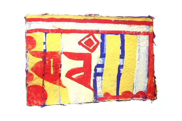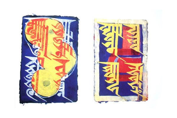 The heritage of contemporary impressions and age-old traditions meets in artist Rolf A Kluenter's bold calligraphic chalk sketches. Explore space, symbol and Tibetan Buddhist discipline in the densely textured handmade paper and resonating icons of the collection.