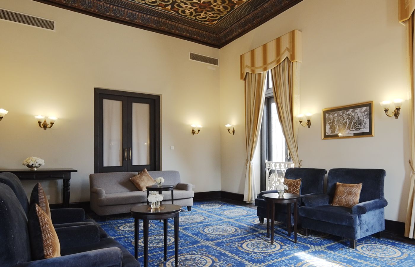 This beautiful and historic hall is a wonderful showcase of Rana design. Adorned with intricate paintings, antique mirrors and chandeliers and murals throughout, it is a gorgeous venue for any event.