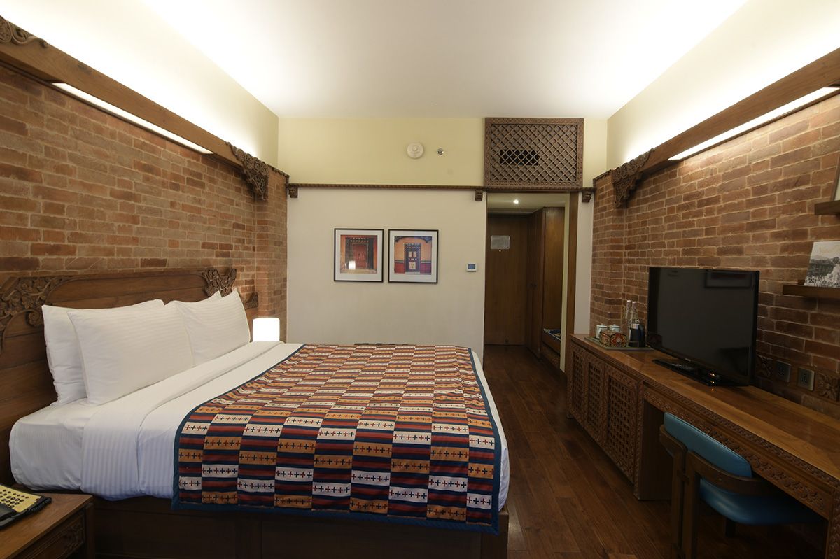 Stepping into the Heritage Deluxe Room is like walking into a living piece of history, a graceful tribute to the architectural soul of the Kathmandu Valley. The walls, adorned with traditional red brickwork and detailed wooden carvings, echo the timeless charm of Nepal’s ancient palaces and courtyards. Each element has been crafted to reflect the cultural brilliance of a bygone era, reimagined for modern comfort.
